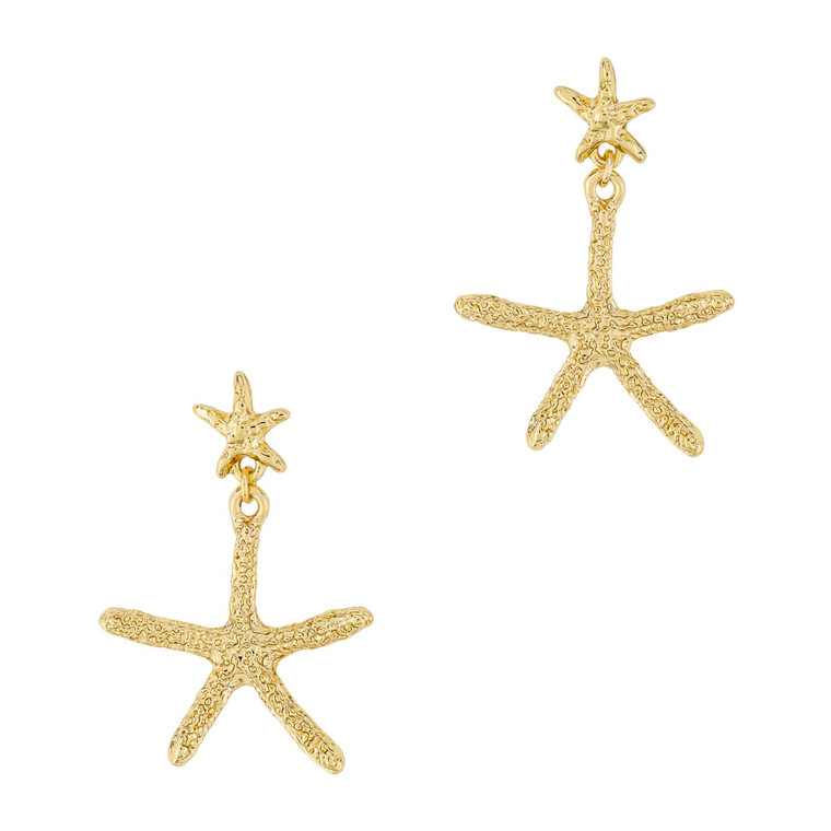 Gold plated zinc starfish 31mm drop post earring